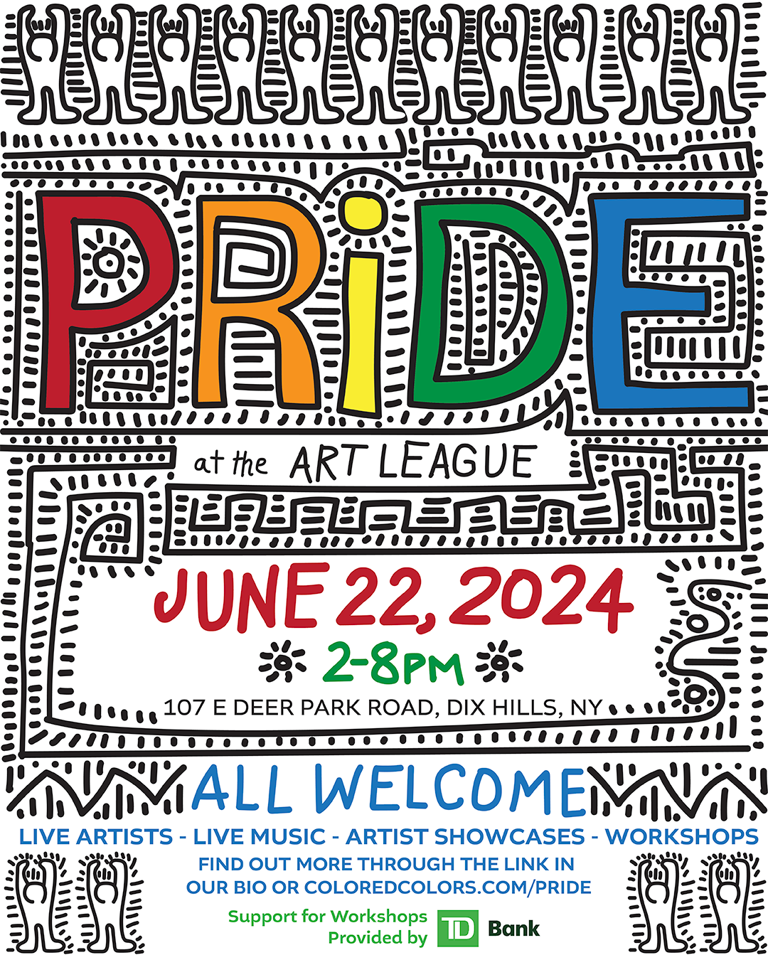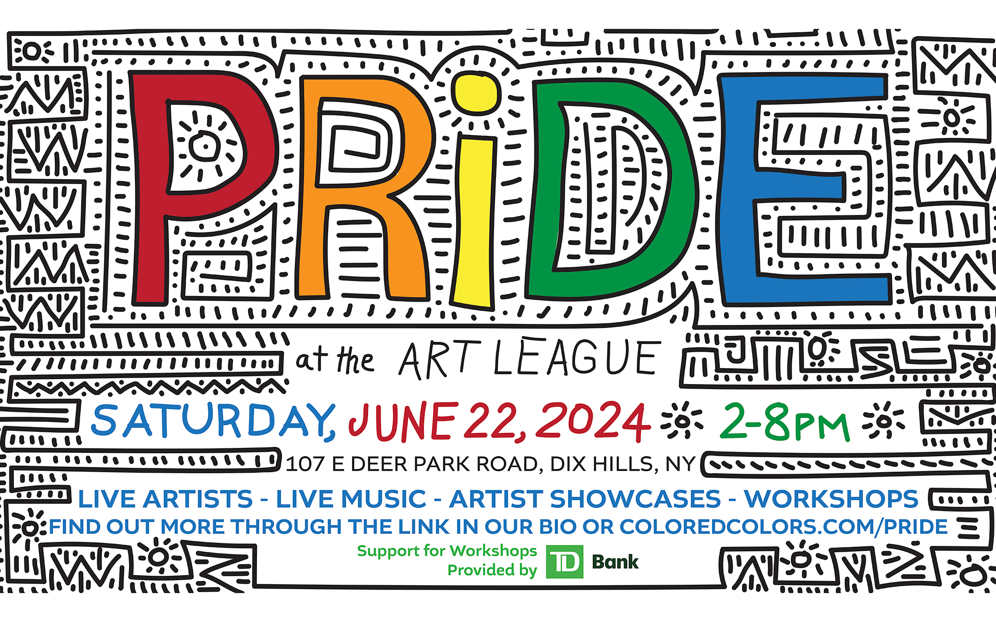 This exciting new Long Island PRIDE celebration is powered by the Art League of Long Island, with workshops generously sponsored by TD Bank.
